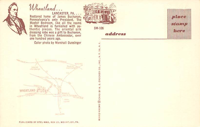 Restored Home of James Buchanan Lancaster, Pennsylvania USA Postcard - Restored Home of James Buchanan Lancaster, Pennsylvania USA Grade: 1 Size: R - Regular Size Postcard - approximately 3 1/2 inch x 5 1/2 inch ... Read More