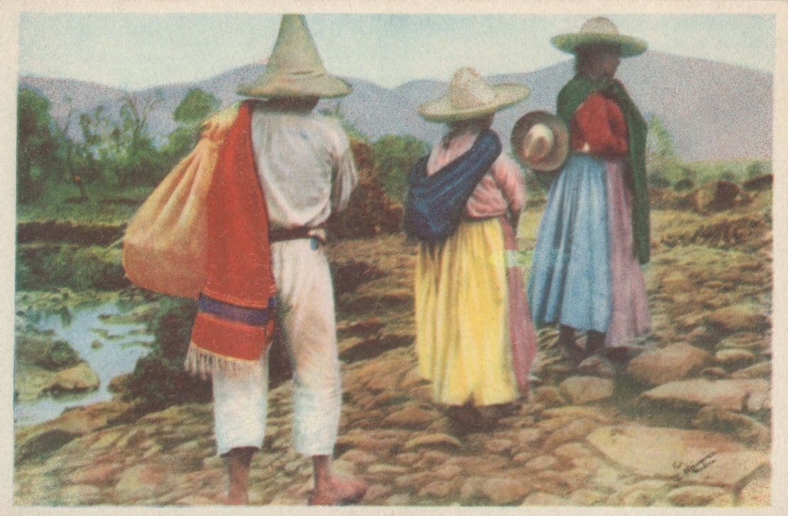 bg633 A vintage locally published Mexican art postcard called Returning To The Mexican Village unused and mint.
