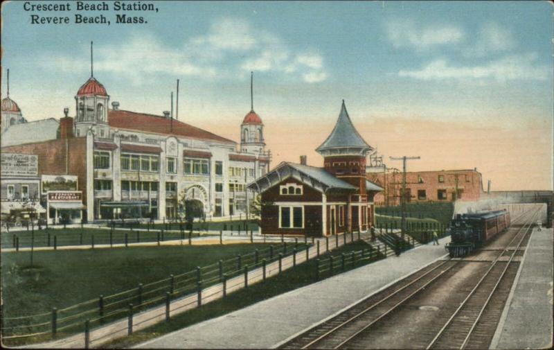Revere Beach Crescent Beach RR Train Station Depot c1910 Postcard