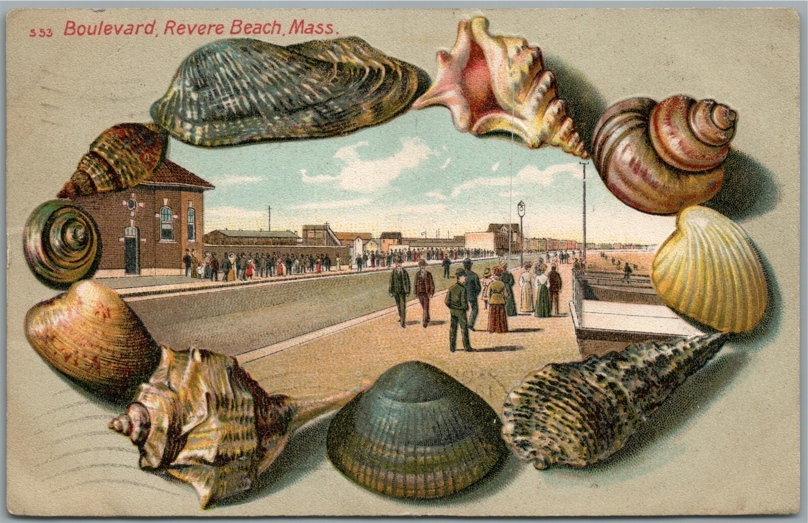 REVERE BEACH MA BOULEVARD ANTIQUE SHELL BORDERS POSTCARD