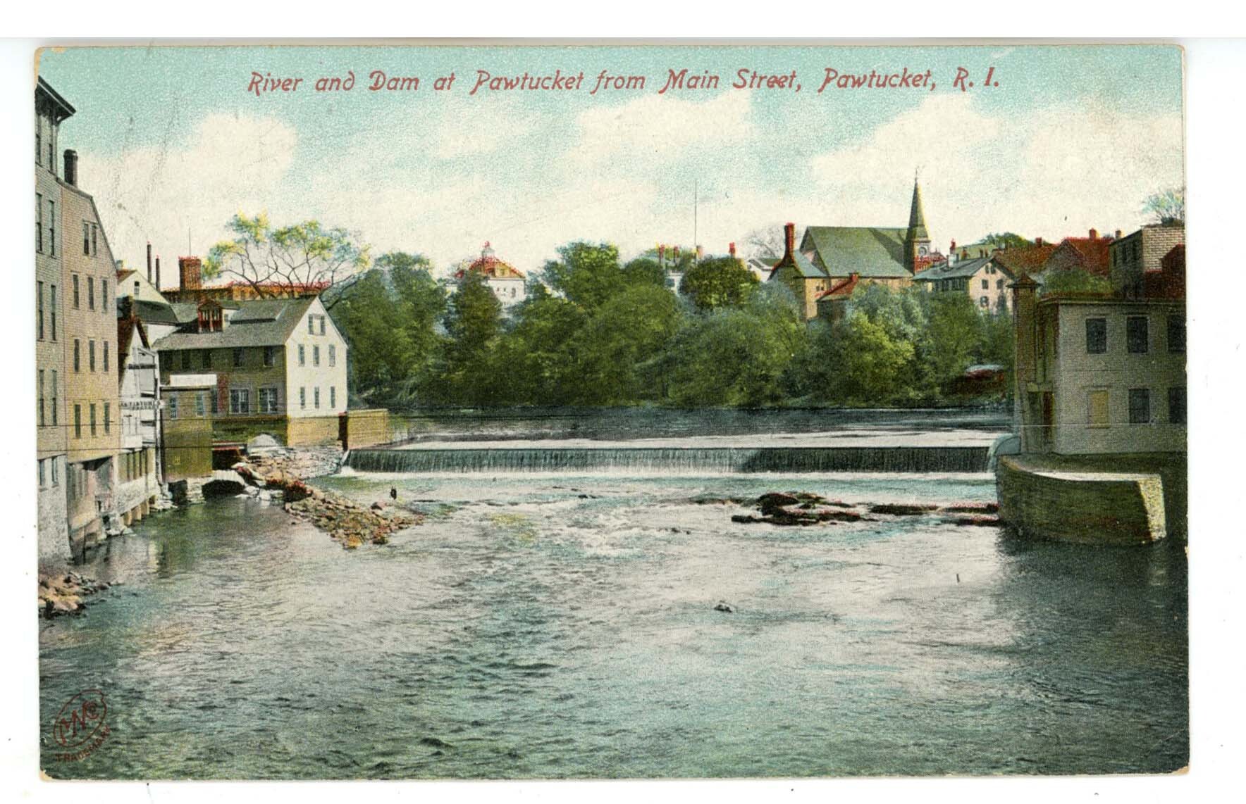 RI - Pawtucket. River & Dam from Main Street