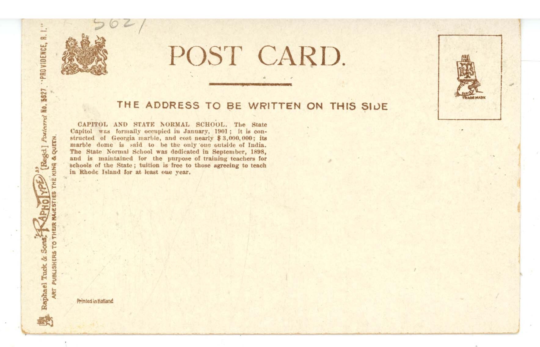 RI - Providence. Rhode Island Normal School & State Capitol (Tuck #5627)