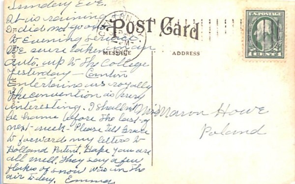 Richardson Hall Canton, New York Postcard - 1912