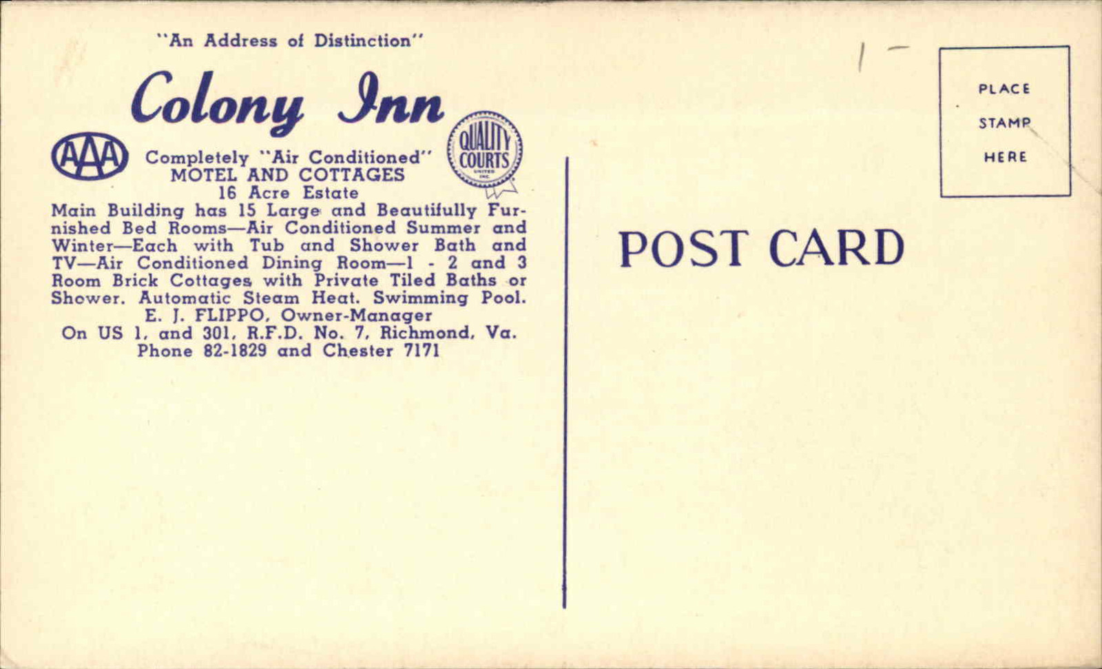 Richmond Virginia VA Colony Inn c1950s-60s Postcard