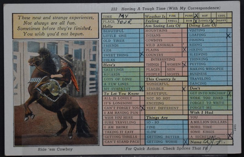 Standard size US postcard [0015]. See scans for condition.My scans may show a small piece of plastic that is not part of the card on one edge, it is there to prop the card up as I get photos of it. I ship your card in between two pieces of custom cut thin cardboard to make sure you get your card just like it shows in the scans. See my feedback on that other site, lots of folks are very satisfied with how I get you your card.
