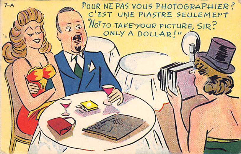 Risque Comic Postcard 1951, Grade: 3, , Size: Regular size: Approx 3 1/2 X 5 1/2 inch (9 cm X 14 cm) Grading Scale: Grade 1 = Perfect corners Grade 2 = Very Minimal corner wear, no creases Grade 3 = Some corne ... Read More