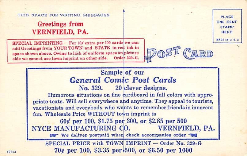 C = Continental Size Postcard - approximately 4 inch X 6 inch (15 CM X 10.5 CM)