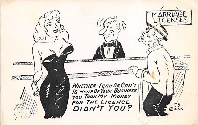 Risque Comic Postcard Unused, Grade: 3, , Size: Regular size: Approx 3 1/2 X 5 1/2 inch (9 cm X 14 cm) Grading Scale: Grade 1 = Perfect corners Grade 2 = Very Minimal corner wear, no creases Grade 3 = Some cor ... Read More