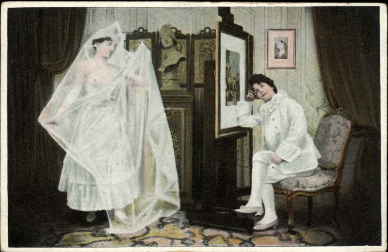 Risque Lesbians Lingerie Partial Nudity Changing Room c1910 Vintage Postcard