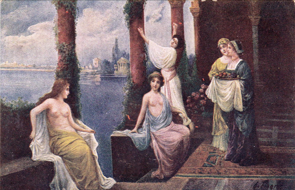 Risque Nude Fingres pinx nach dam bade Postcard c1910