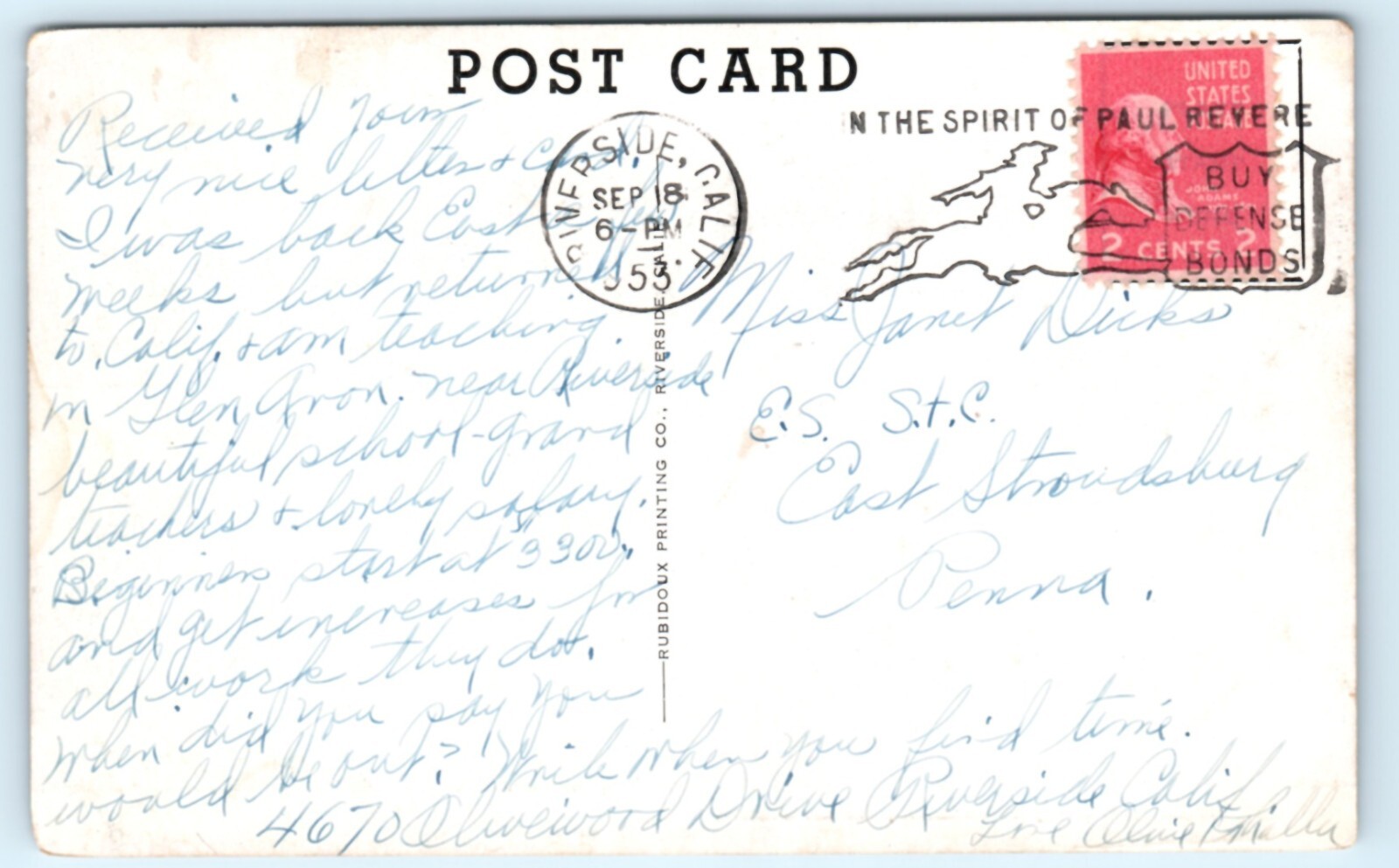 Condition: The first main image is zoomed in to show detail. This is a used printed postcard measuring ... Read more about the seller notes The first main image is zoomed in to show detail. This is a used printed postcard measuring approximately 5.5 x 3.5 inches. It shows signs of age and handling, including folds, creases, cracks, chips, scratches, corner bumping, edge wear, and discoloration. Wear from use, storage, transport, and age. The postcard may also have ink or pencil writing, as well as postal ink from cancellation marks. We encourage you to carefully review the provided color scans/photos, as they are an important part of the item's condition description. If you have any questions before bidding or purchasing, feel free to reach out and we’ll respond as soon as possible. Read Less about the seller notes