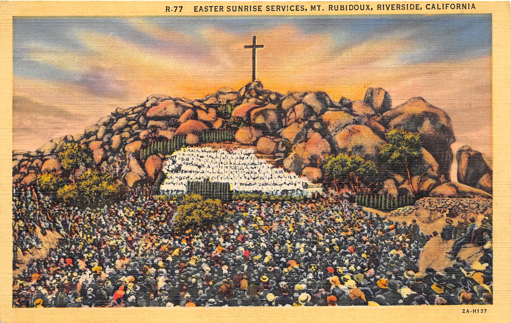 Riverside California 1940s Postcard Easter Sunrise Services Mt. Rubidoux