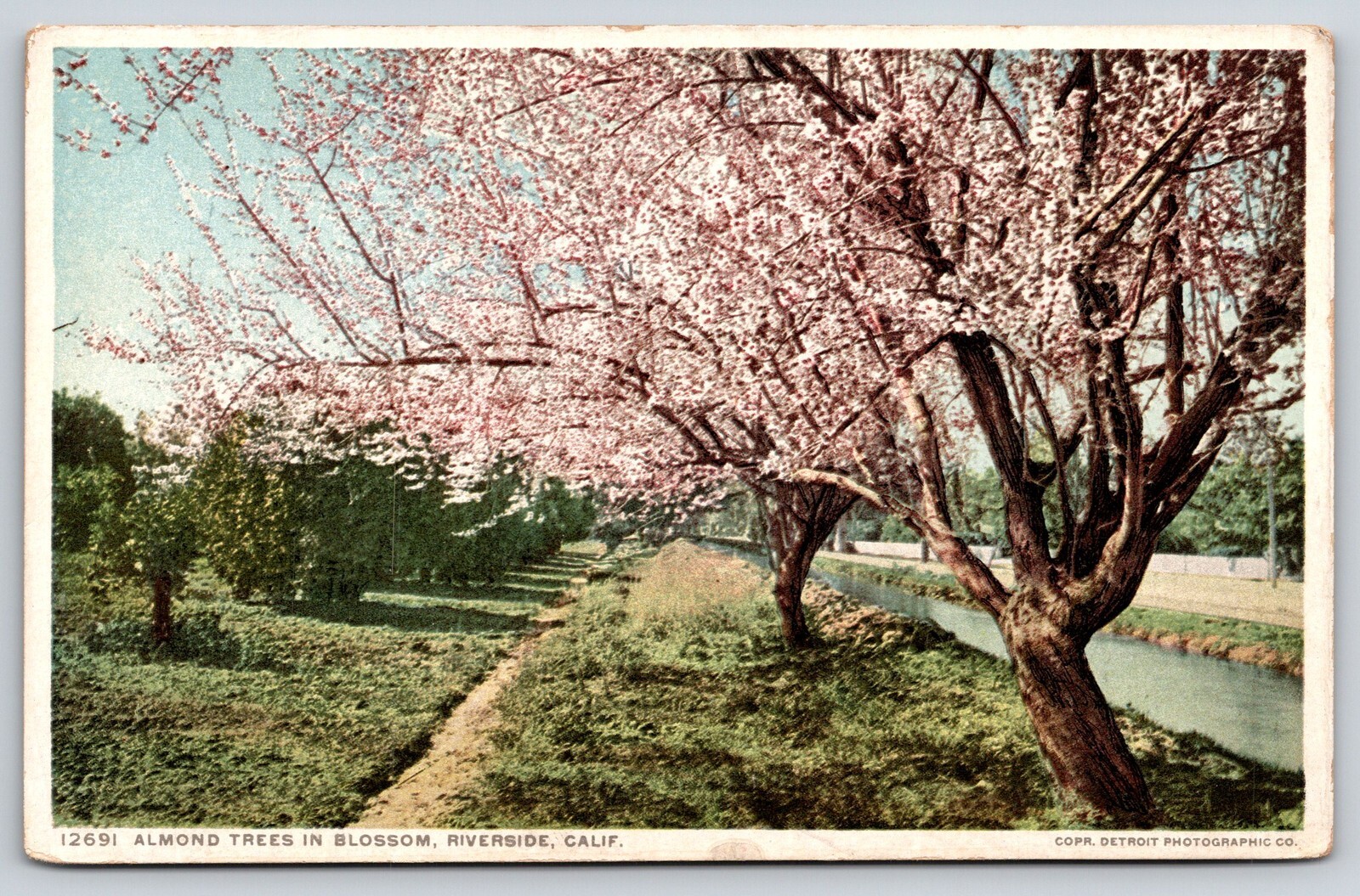 Riverside California~Almond Trees Blooming~River~Detroit Pub Co c1910 Postcard
