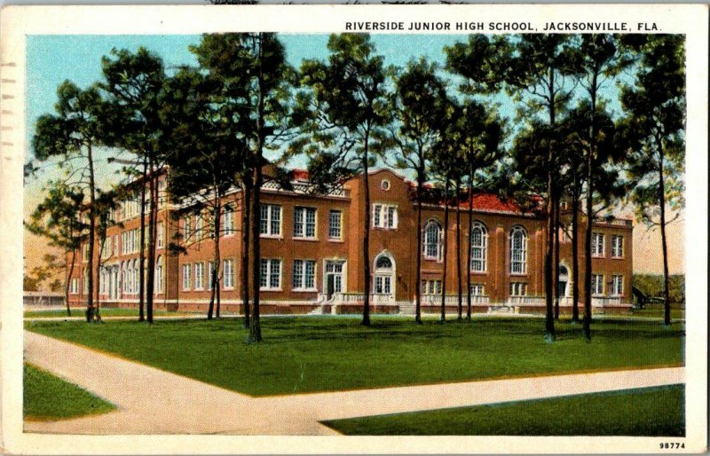 Riverside Junior High School Jacksonville FL Florida Vintage Standard View PostcardPostmarked 1944Reasonable Offers Always ConsideredPostcard Enclosed in Clear SleevePlaced Between 2 Pieces of CardboardShipped USPS First Class MailNon Machinable-Marked Do Not BendCombined Shipping Available