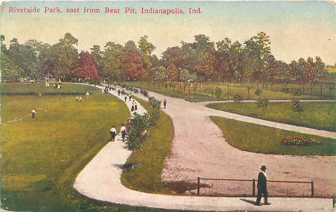 Riverside Park East from Bear Pit, Indianapolis IN Postmarked 1910 Publisher: Majestic Publishing Co. Condition: Typical wear.