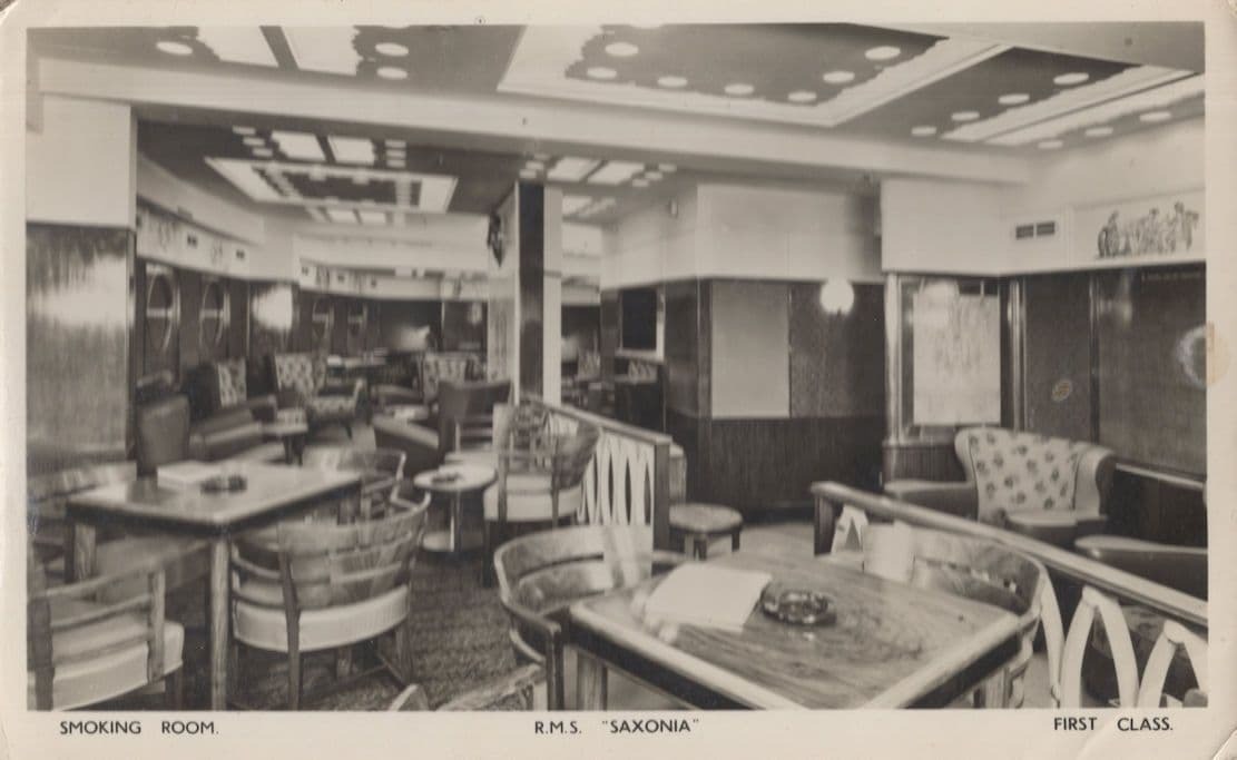 RMS Saxonia First Class Smoking Room Cabin Ship Old Postcard