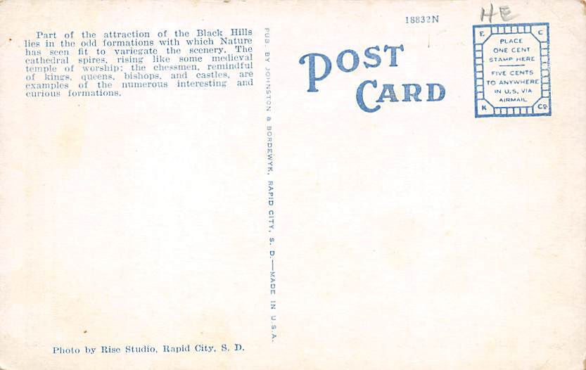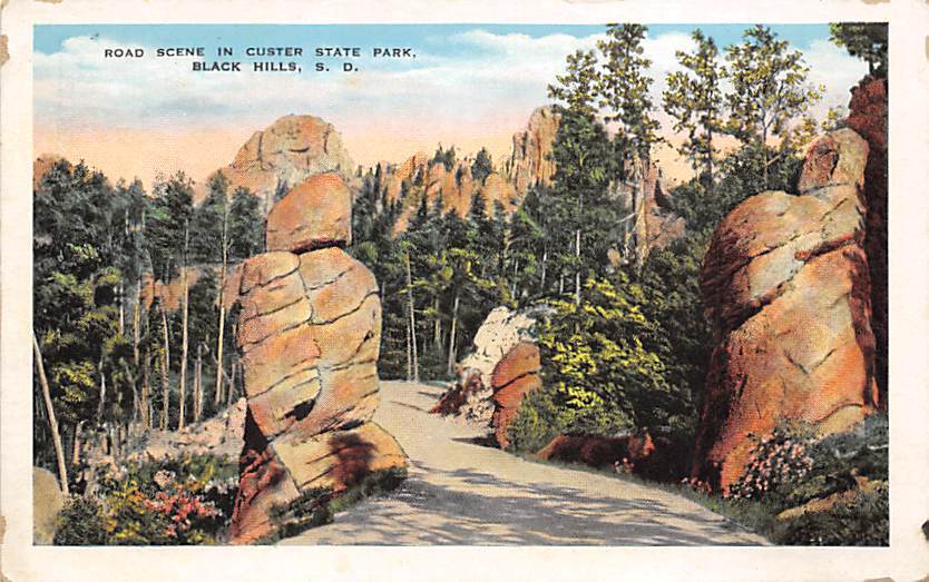 Road scene in Custer State Park Black Hills SD Postcard Postal Date: Unused Grade: 3 - paper wear front edges, tab marks on corners from being in album Size: Regular Size Postcard - approximately 3 1/2 inch x 5 ... Read More