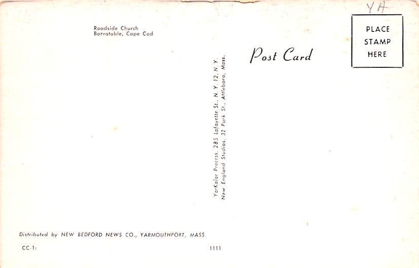Roadside Church Barnstable, Massachusetts MA Postcard