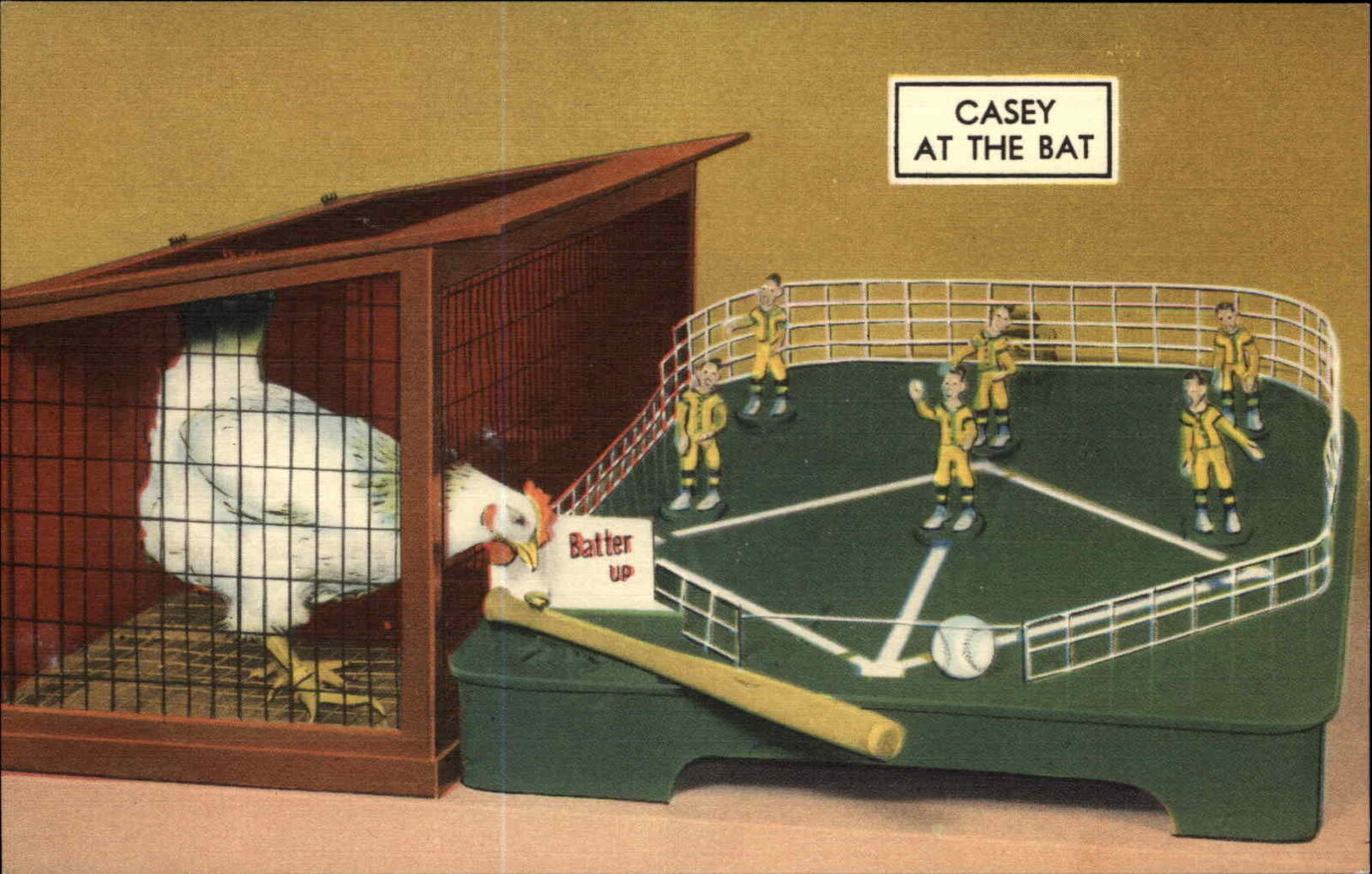 Roadside - Trained Chicken Playing Baseball Hot Springs AR Linen Postcard