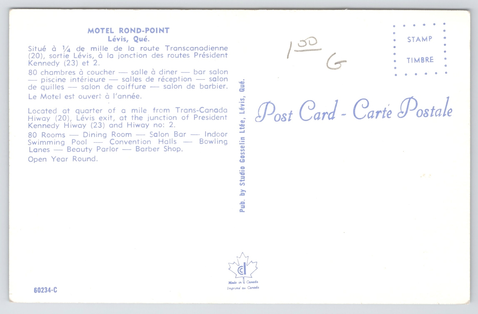 Roadside~Levis Quebec Canada~Motel Rond-Point~View Indoor Pool & Tables~Vtg PC