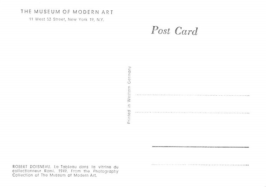 Robert Doisneau - Museum of Modern Art Grade: 1 Category: Modern Postcard, Continental Size, Approx 4 in x 6 in (10 cm x 15.25 cm) Product Size: Continental size: 4X6 inches (10.5 cm x 15 cm) Grading Scale: Gr ... Read More
