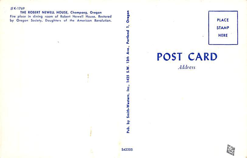 Robert Newell House, Fireplace Champoeg, Oregon OR Postcard - Unused