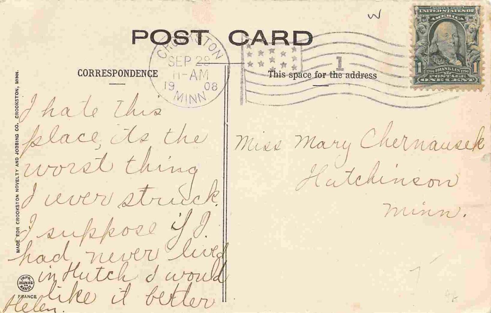 Robert Street Looking East Crookston Minnesota 1908 postcard