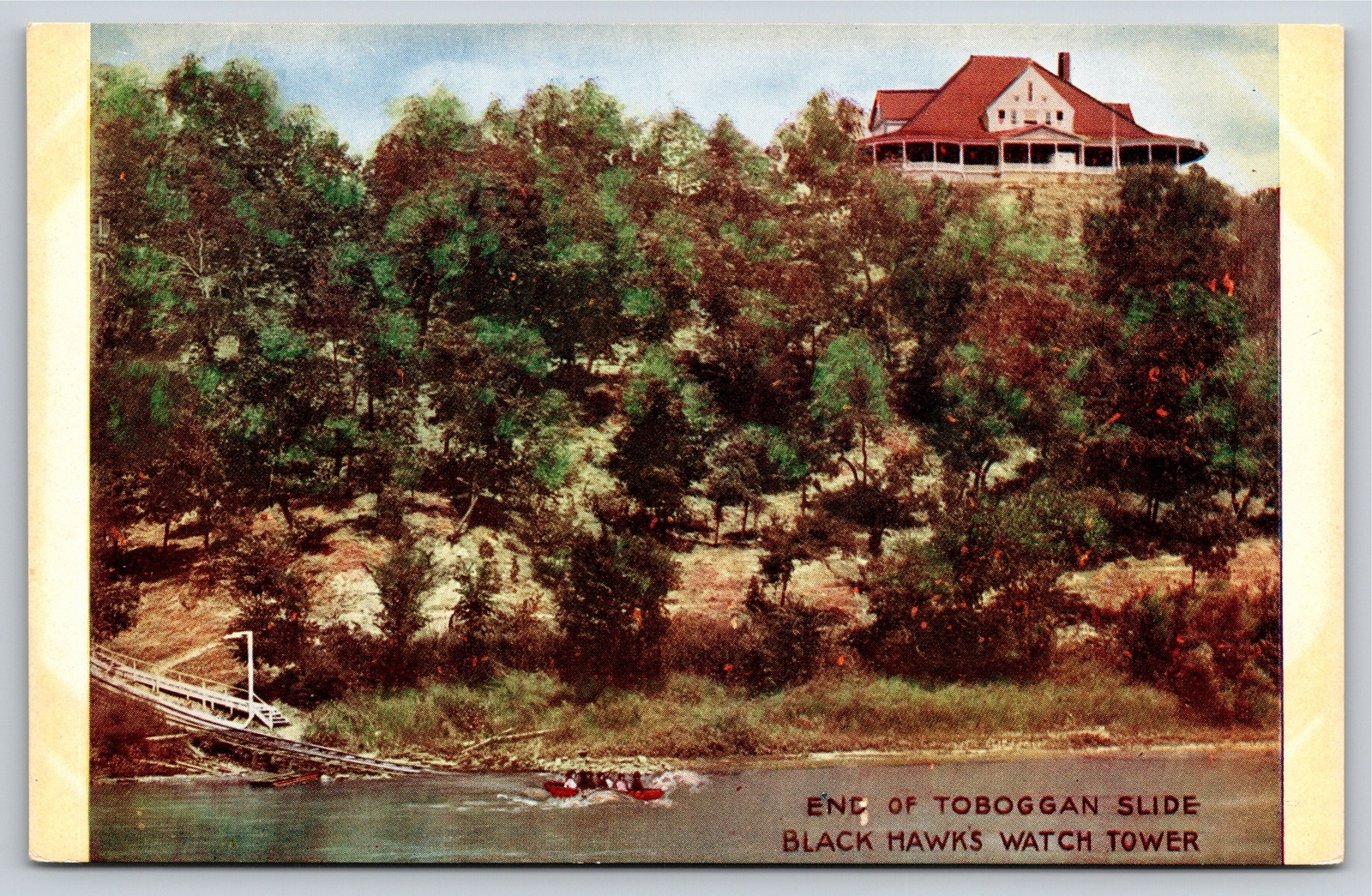 Rock Island IL~End of Toboggan Slide Black Hawks Watch Tower~Vintage Postcard