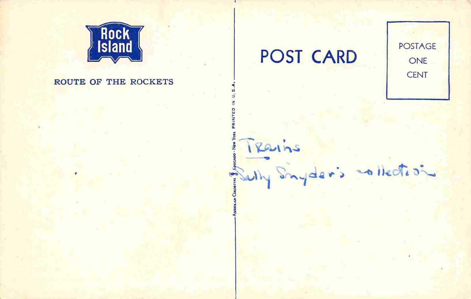 Rock Island Railroad Train Rocket Streamliner postcard