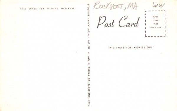 Rockport in Rockport, MA Postcard - Unused Grade: 1 Size: R - Regular size: Approx 3 1/2 X 5 1/2 inch (9 cm X 14 cm) Grading Scale: Grade 1 = Perfect corners Grade 2 = Very Minimal corner wear, no creases Grad ... Read More