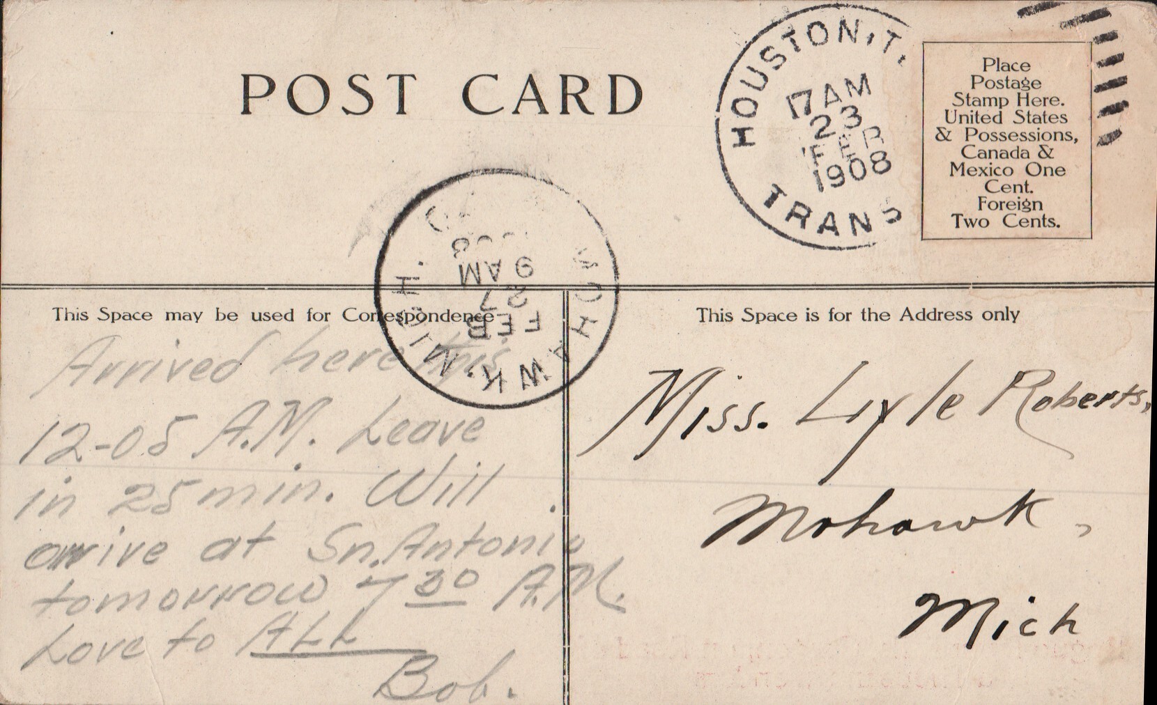Rec'd: Feb 27 1908 Mohawk, Mich