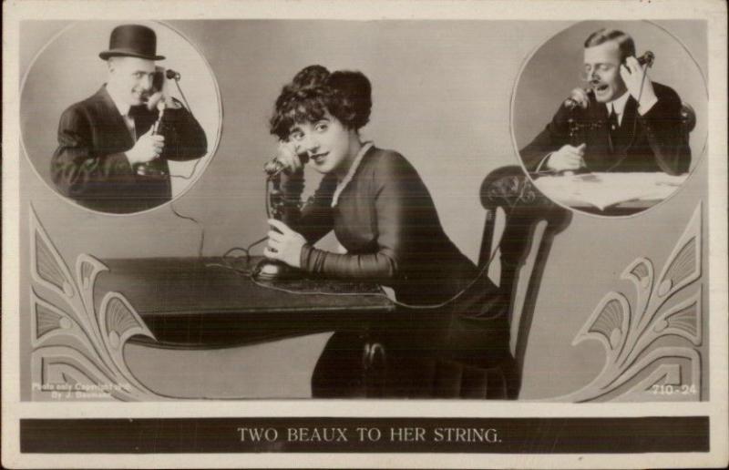 Romance Beautiful Woman on Telephone w/ Boyfriends Violin Ref RPPC c1910