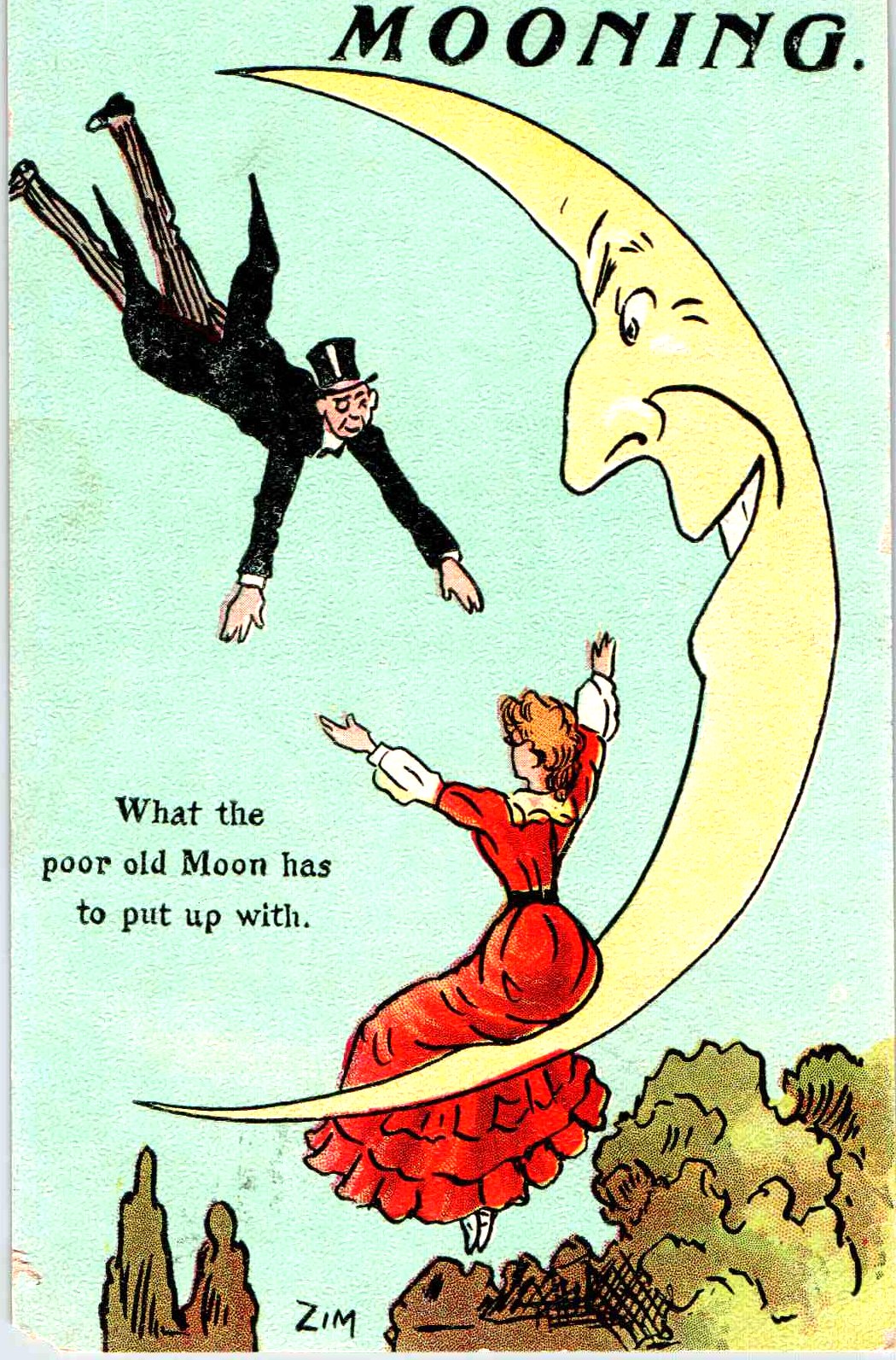 Romance - Mooning. What the poor old Moon has to put up with. - 1909