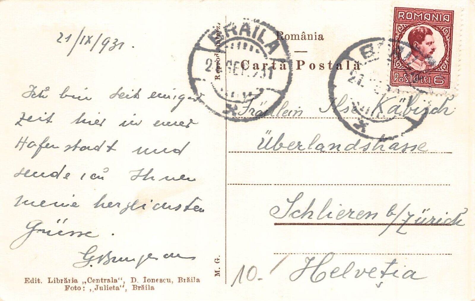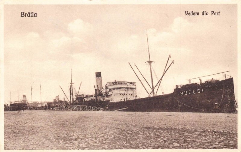 Romania 1931 Braila Harbor Bucegi ship Steamboat postcard