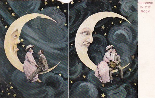 Romantic Couple Spooning In The Moon