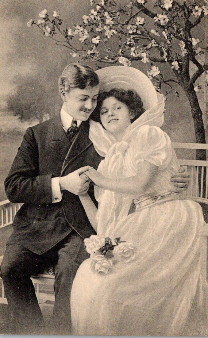 Romantic Couples Sitting On Bench 1918
