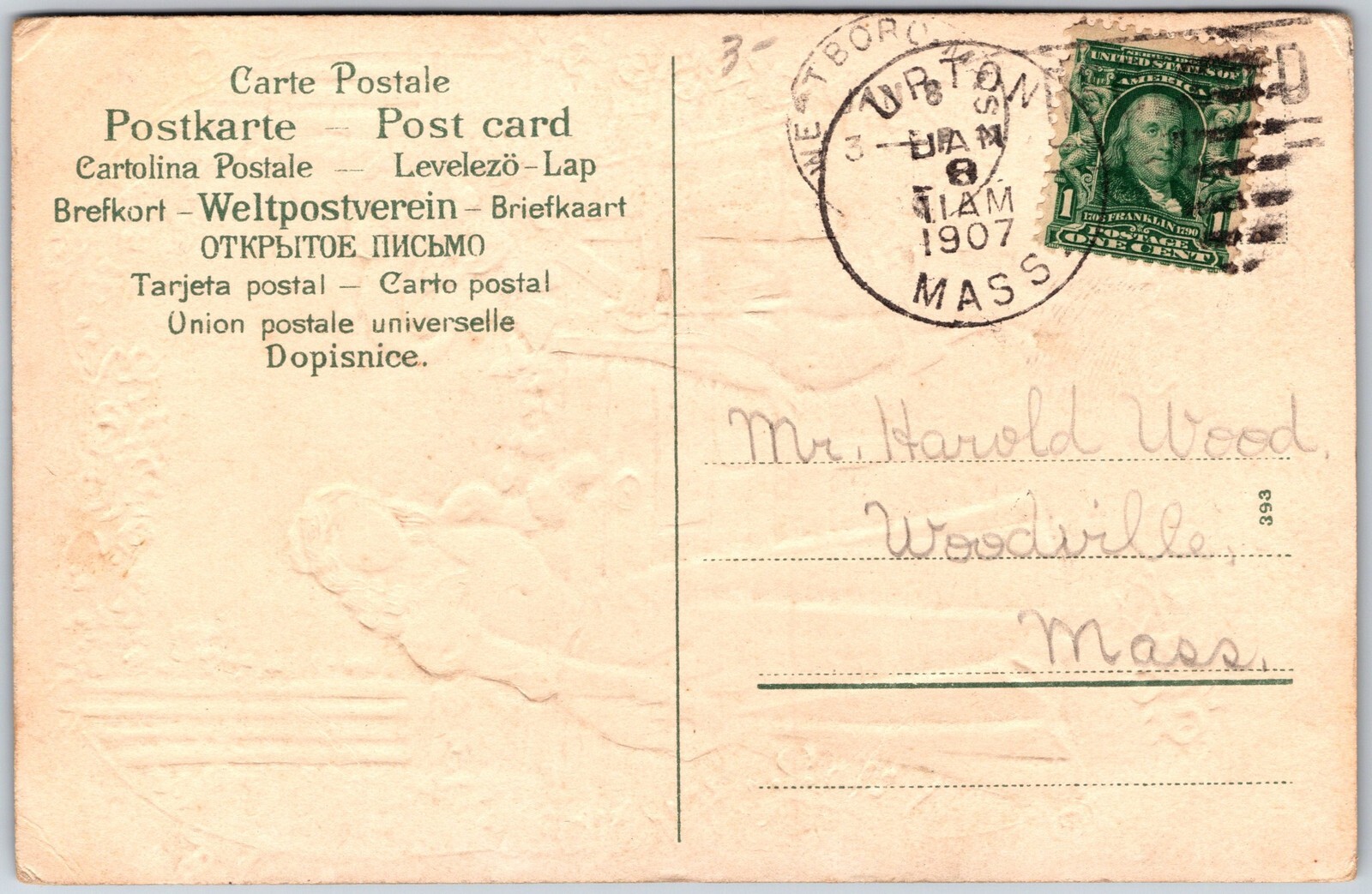 Romantic Renaissance, 1907 Couple In Floral Frame & Classical Columns, Postcard