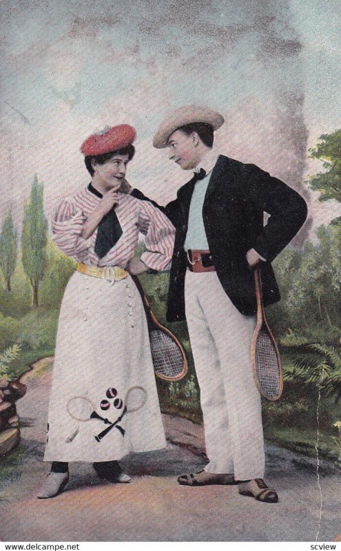 Romantic Tennis Couple, 1900-10s #5 :: Postcard, 3.5" by 5.5", Litho