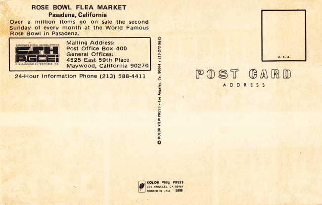 Rose Bowl Flea Market. Pasadena, California. Standard sized chrome card. Very good condition.