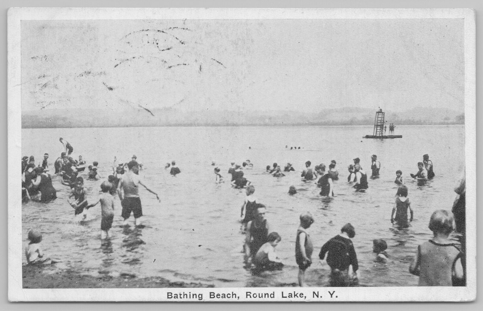 Round Lake New York~Bathing Beach~1920s B&W Postcard