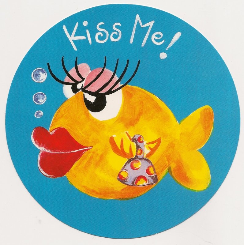 Round Postcard - Kiss Me with Fish - 1995