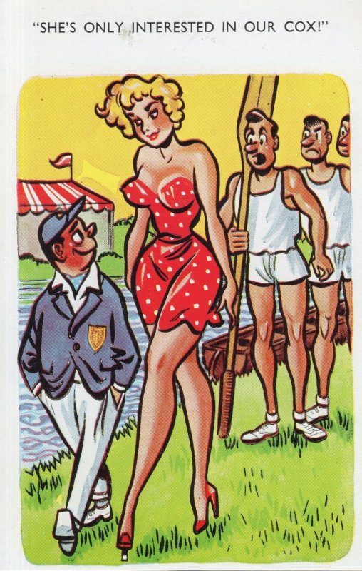 Rowing Boat Race Oars Ship Cox Sexy Lady Old Comic Postcard