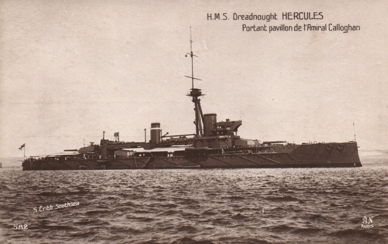 Royal Navy Dreadnought HMS Hercules RPPC Postcard c1910s