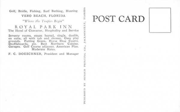 Royal Park Inn Vero Beach, Florida Postcard - Unused