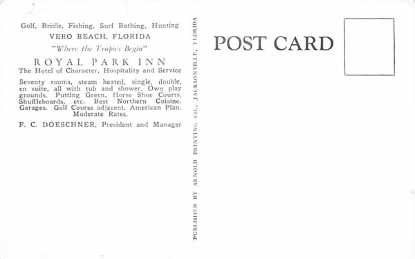 Royal Park Inn Vero Beach, Florida Postcard - Unused