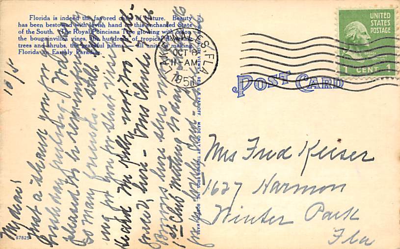 Royal Poinciana Tree in Florida Trees FL Postcard - 1951 Grade: 1 Size: R - Regular size: Approx 3 1/2 X 5 1/2 inch (9 cm X 14 cm) Grading Scale: Grade 1 = Perfect corners Grade 2 = Very Minimal corner wear, n ... Read More