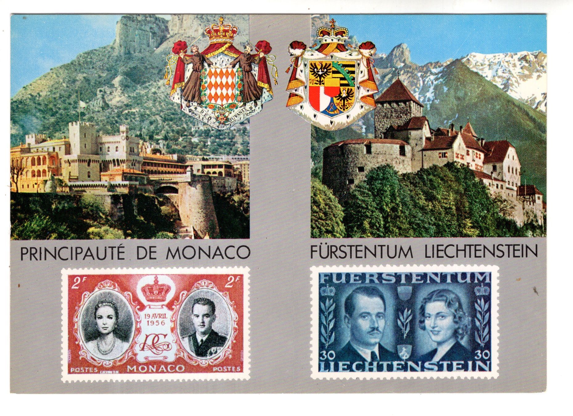 Royal Stamps, Monaco, Liechtenstein on Postcard