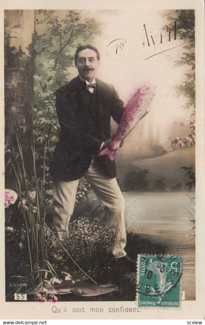 RP: April's Fool Day , Man & Fish , 00-10s :: Postcard , 3.5 by 5.5 , Real Photograph