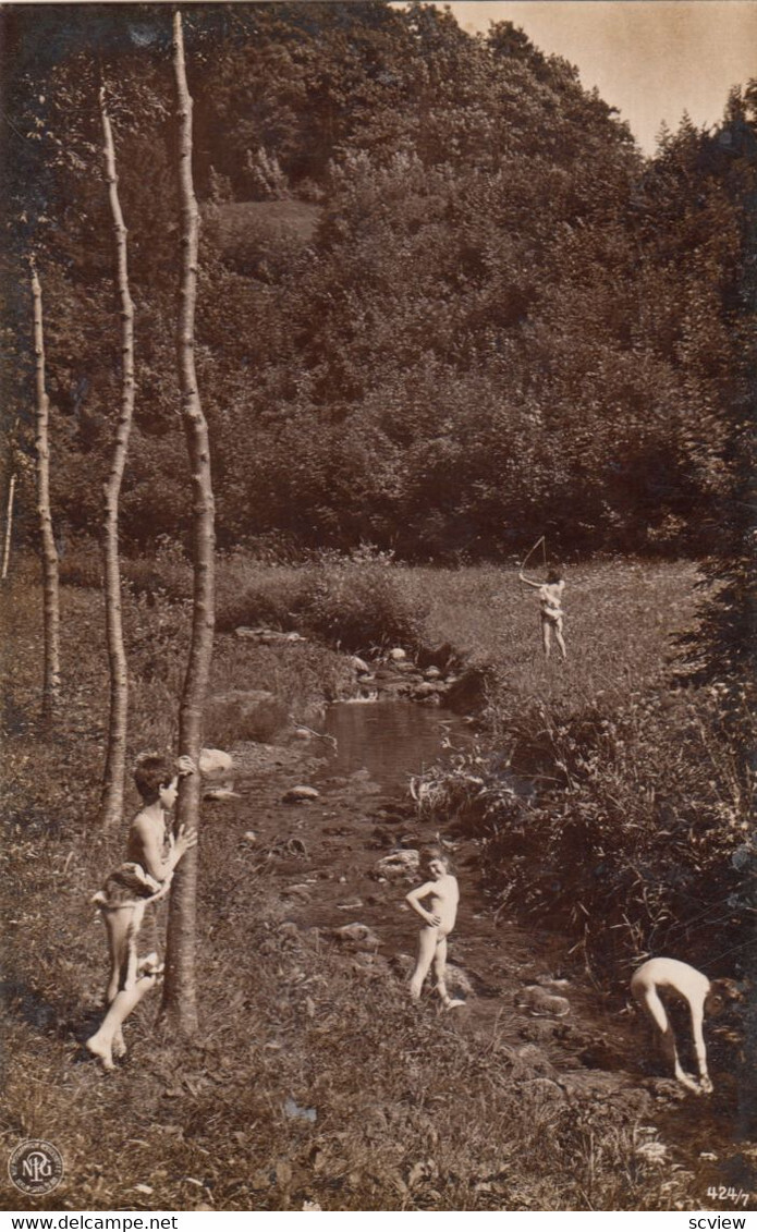 RP; Kids playing along a stream, 1901-07