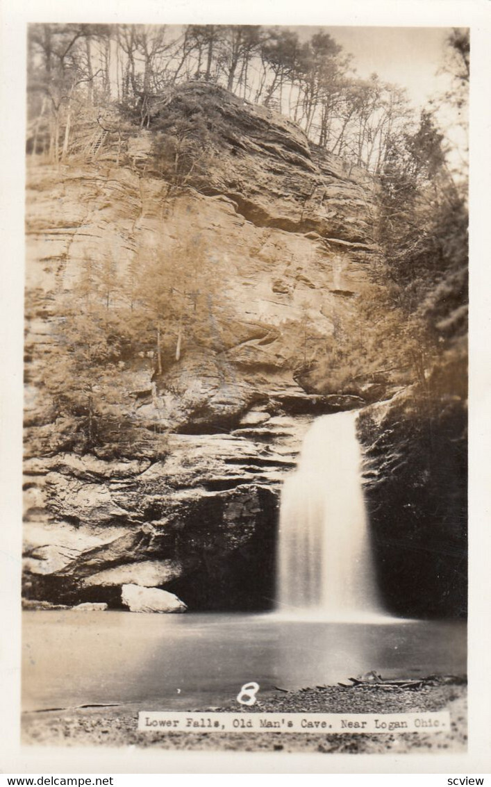 RP: LOGAN , Ohio , 1930-40s ; Lower Falls , Old Man's Cave :: Post card , 3.5 by 5.5 , Real Photograph